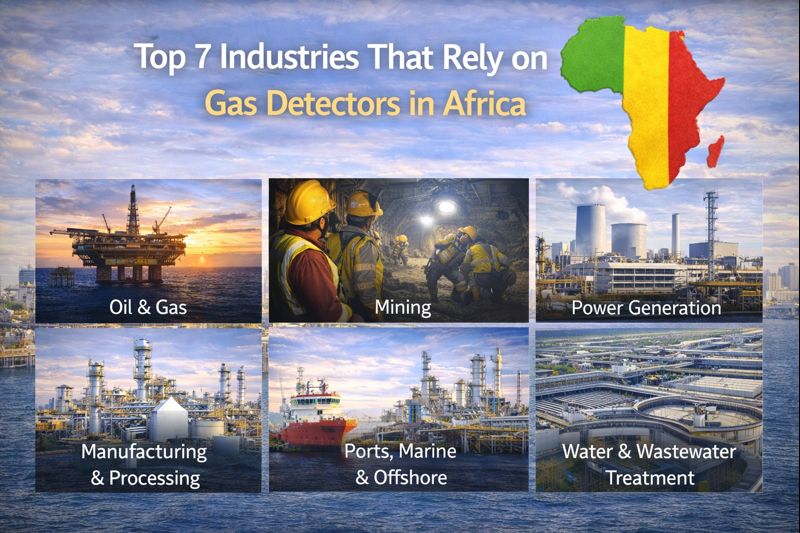 1) Oil & Gas – Countries such as Nigeria, Angola, and Congo depend heavily on oil & gas operations, where gas detection is critical for monitoring flammable and toxic gases.